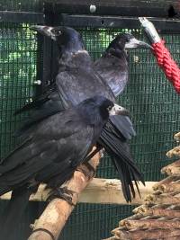 One of the most important aspects of corvid rehabilitation is the provision of a natural diet, environment and associations that ideally duplicate what corvids would be exposed to in the wild. This can be achieved by building and furnishing aviaries with this goal in mind. Since the majority of corvid rehabilitation deals with orphans, this approach is especially critical to releasing strong, robust, well-adjusted corvids that will go on to survive in the wild. However, theory and reality are as always slightly different. This is particularly true when corvids are being cared for longterm, which is quite often a necessity and will give them the best chance of survival in the wild. Sadly, in reality, many rescues will not give these birds the chance they deserve, because long-term rehabilitation is time consuming and financially demanding. Many of these birds will be either put to sleep straight away, or will even be prematurely released.